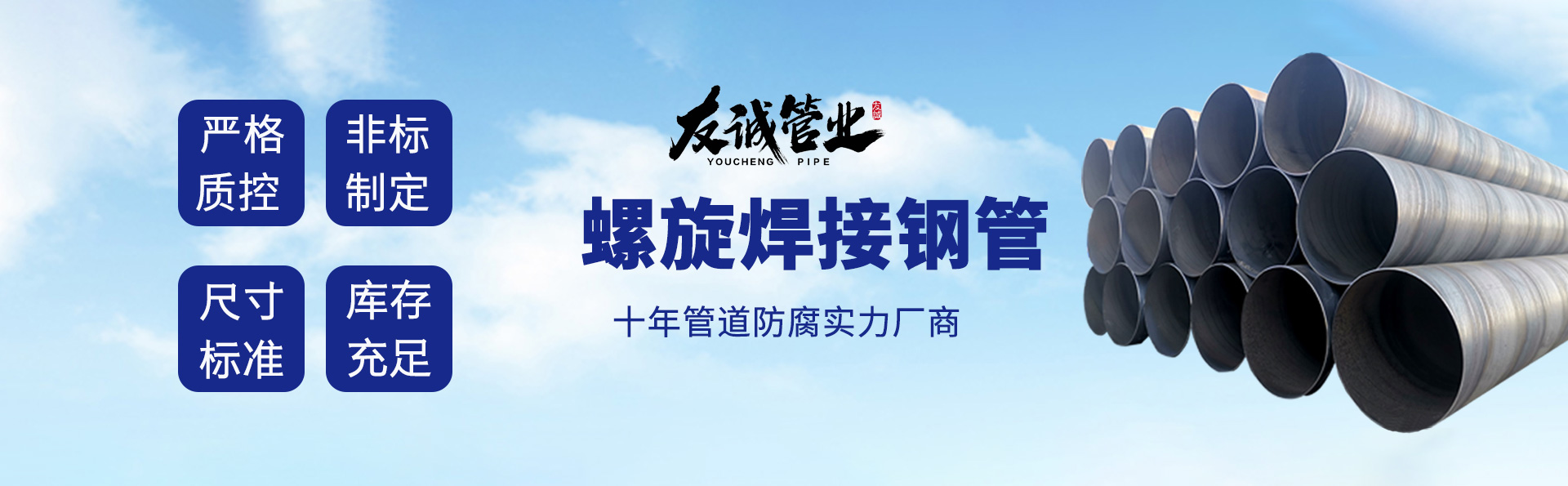滄州友誠管業有限公司是一家專業從事生產防腐涂塑管道及管件于一體的大型企業。公司注冊資金8600萬元,位于中國管道生產基地—河北鹽山縣,近靠京滬高速、榮烏高速、黃石高速30公里,高鐵滄州西站40公里,天津國際機場、濟南遙墻機場150公里,為客戶來訪及業務發(fā)展提供了便利的交通條件。 鋼管系列:螺旋鋼管、無縫鋼管、ERW直縫焊管、JCOE埋弧焊直縫鋼管、熱鍍鋅鋼管。 涂塑系列:內外涂塑鋼管、涂塑復合鋼…… 了解更多